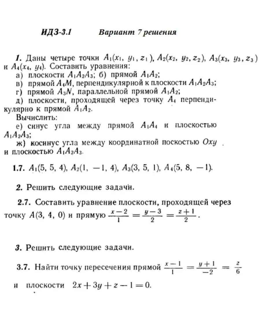 Решения 3-х заданий на прямые и плоскости в пространстве из Рябушко части 1 ИДЗ 3.1 вариант 7
