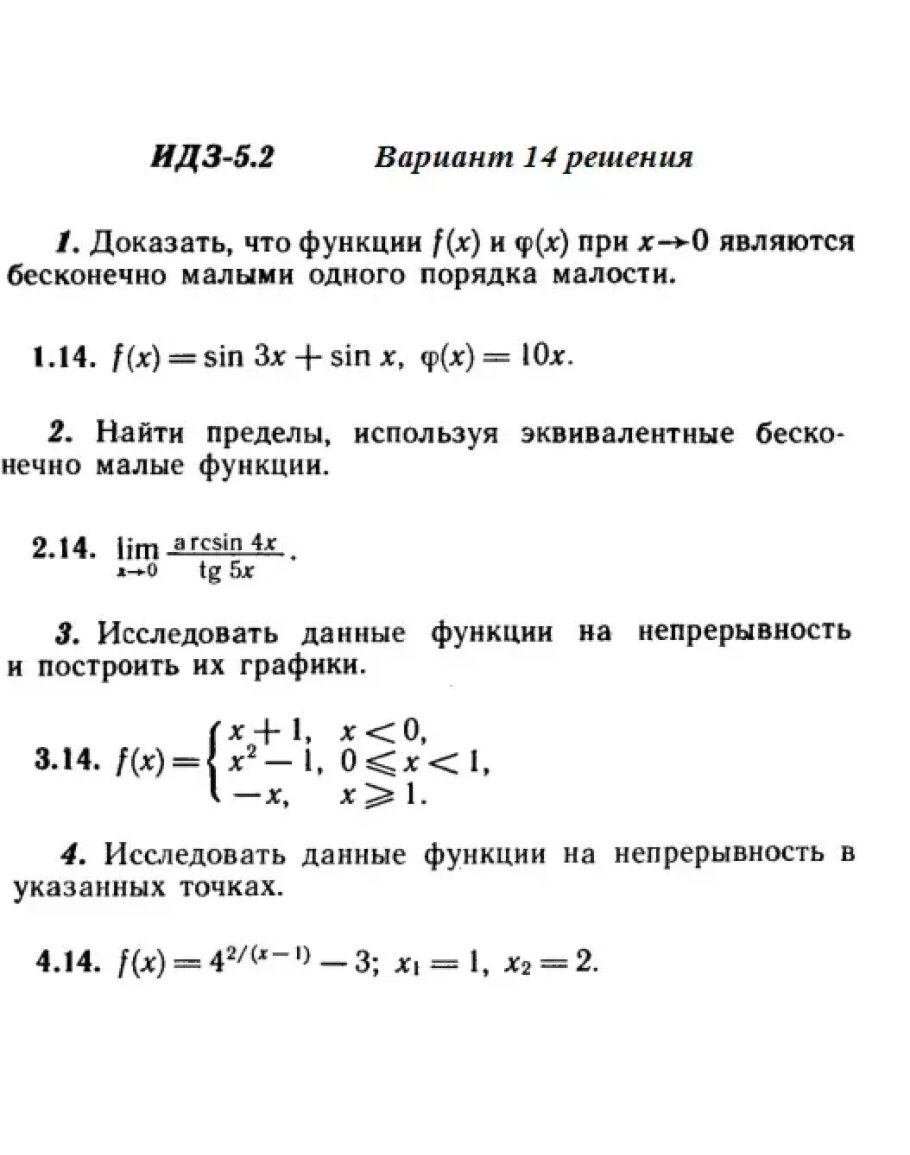 Решения 4-х заданий на пределы функций из Рябушко части 1 ИДЗ 5.2 вариант 14