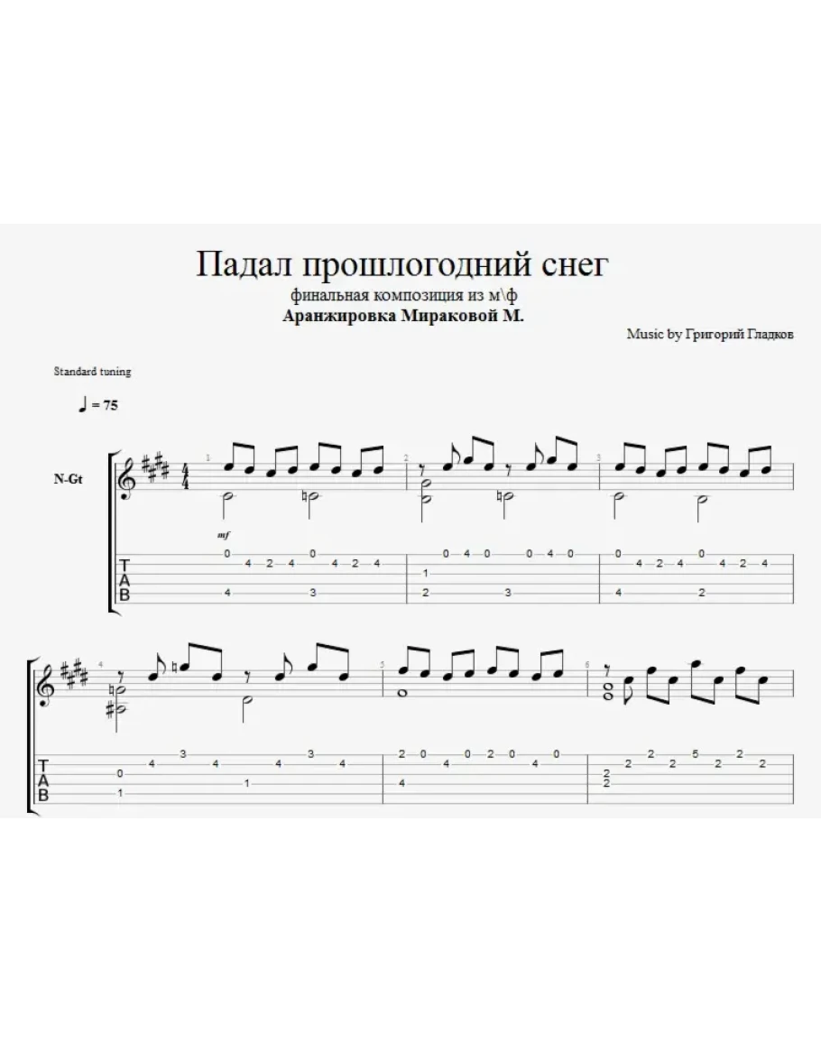 Авторская аранжировка для шестиструнной гитары от Марины Мираковой на финальную композицию из мультфильма "Падал прошлогодний снег".