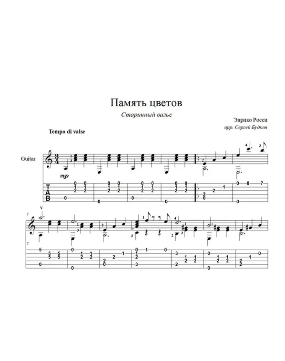 Аранжировка для гитары старинного вальса итальянского композитора Энрико Росси.