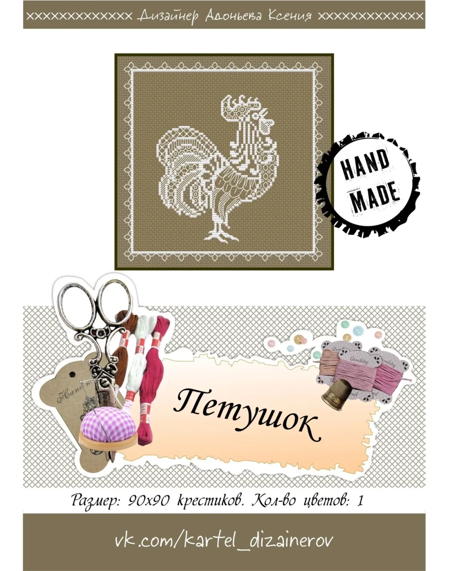 Эксклюзив. схема для вышивки крестом Ажурный петушок