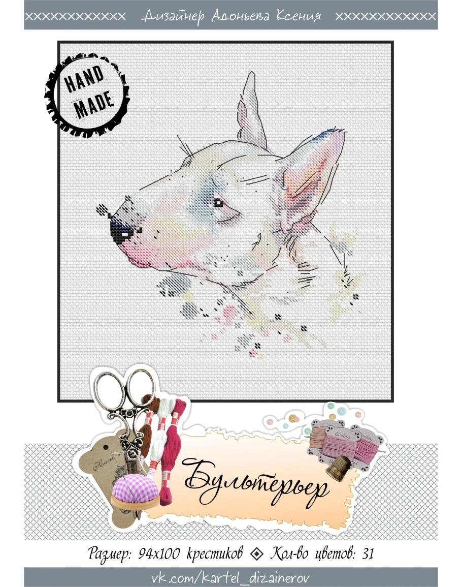 Эксклюзив. схема для вышивки крестом Бультерьер