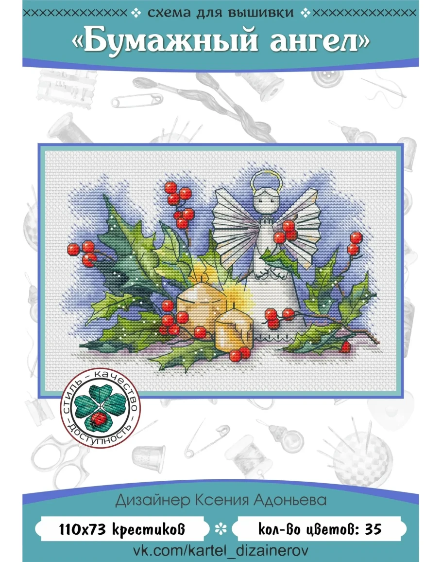 Эксклюзив. схема для вышивки крестом Бумажный ангел
