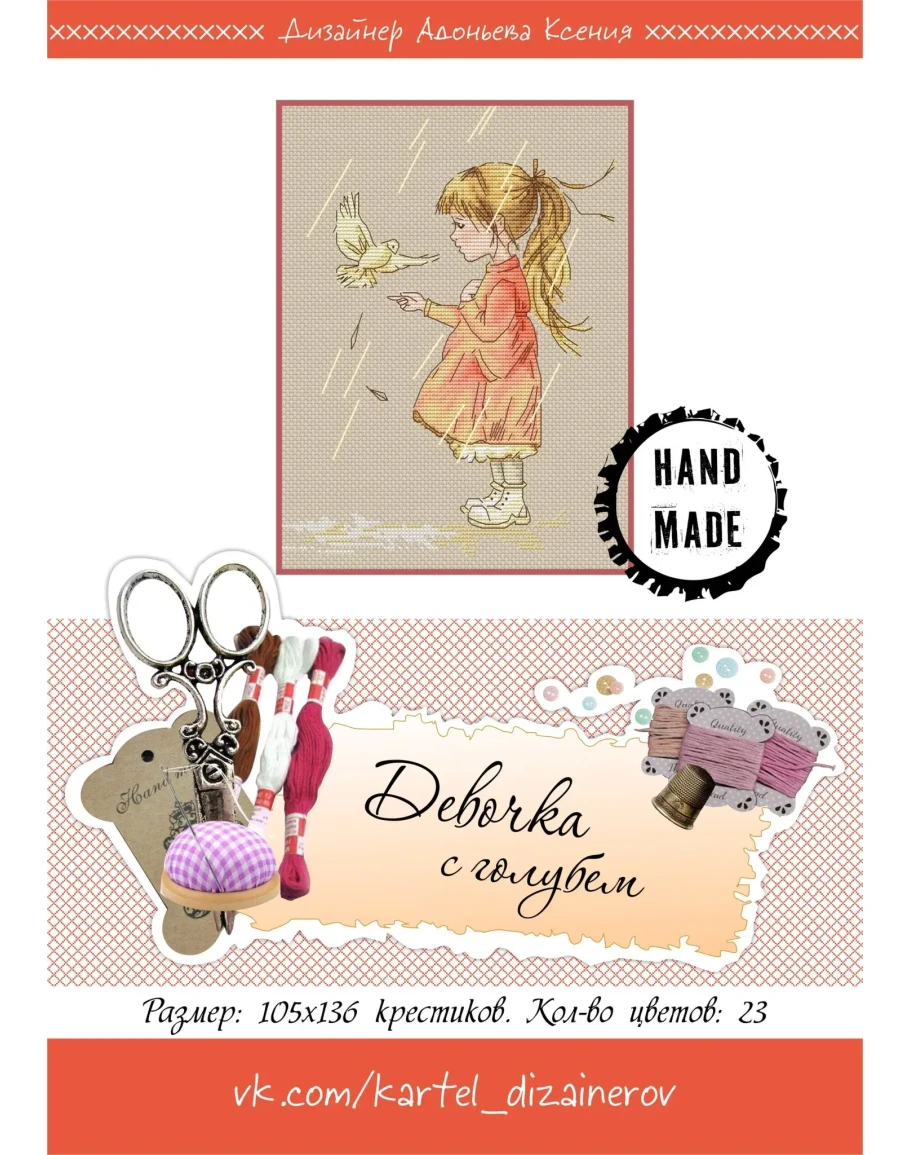 Эксклюзив. схема для вышивки крестом Девочка с голубем
