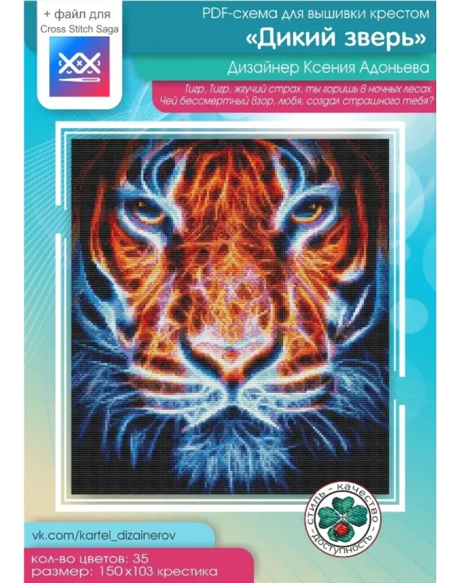 Эксклюзив. схема для вышивки крестом Дикий зверь