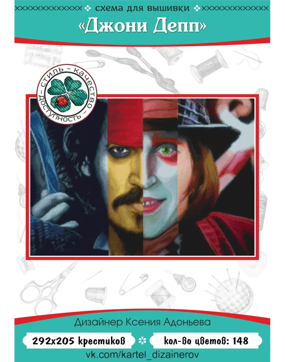 Эксклюзив. схема для вышивки крестом "Джони Депп"