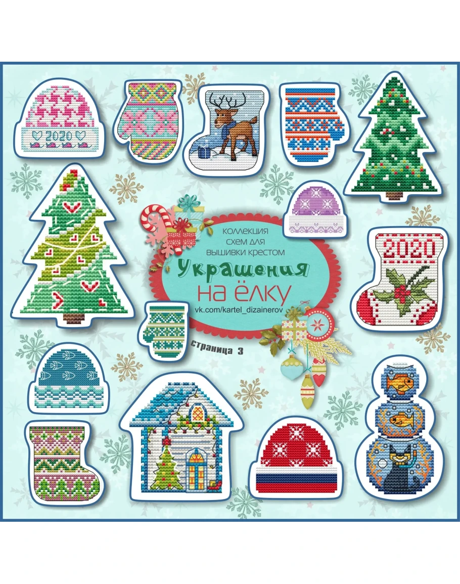 39 схем для вышивки крестом с елочными игрушками