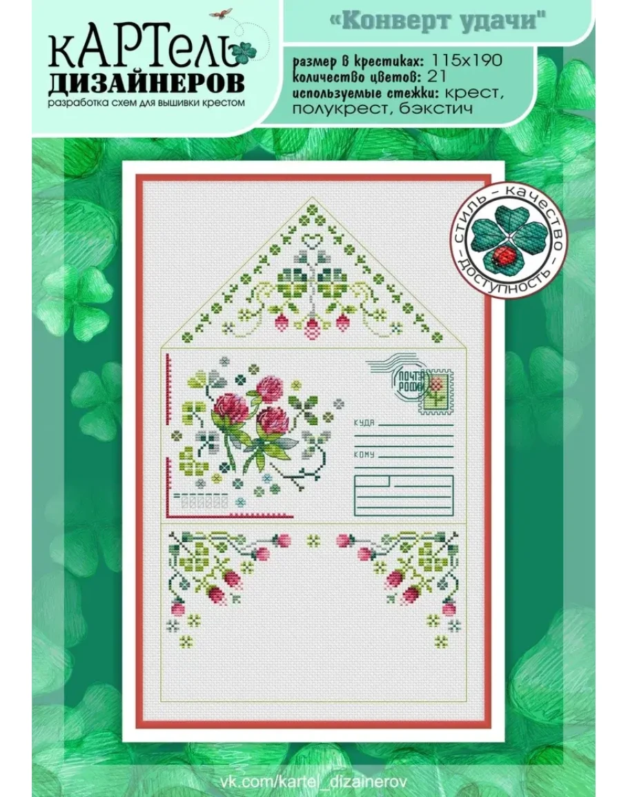 Эксклюзив. схема для вышивки крестом Конверт удачи