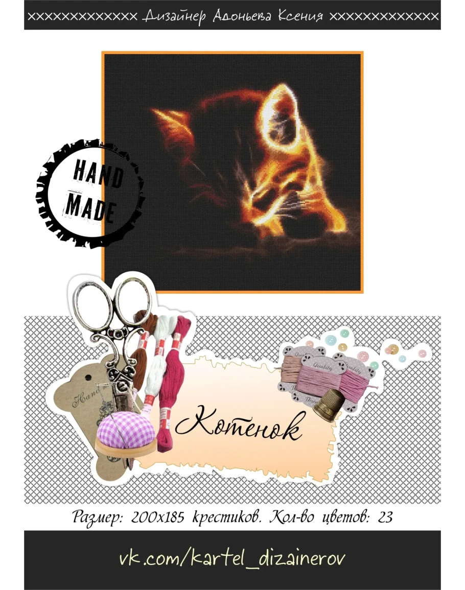 Эксклюзив. схема для вышивки крестом "Котенок"