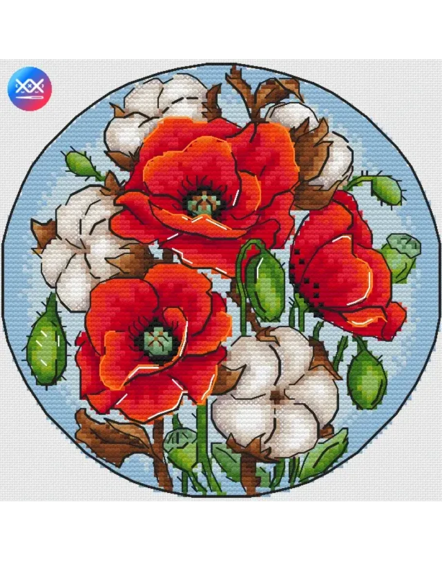 Эксклюзив. схема для вышивки крестом Маки и хлопок