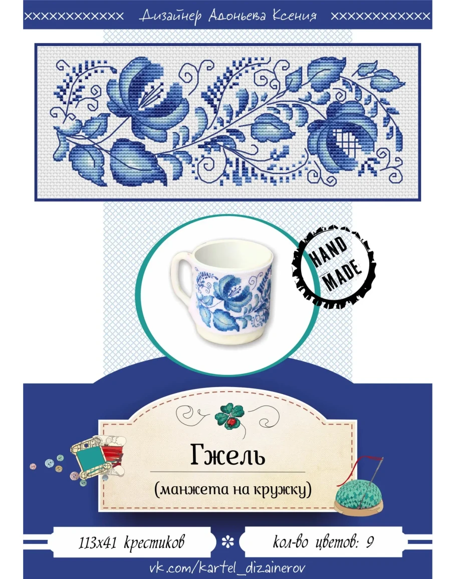 Эксклюзив. схема для вышивки крестом Манжета Гжель