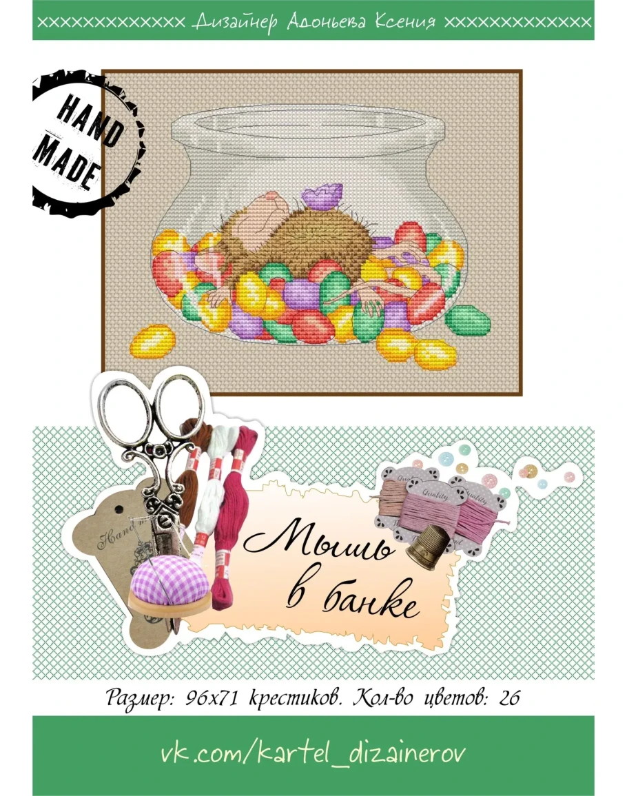 Эксклюзив. схема для вышивки крестом Мышь в банке