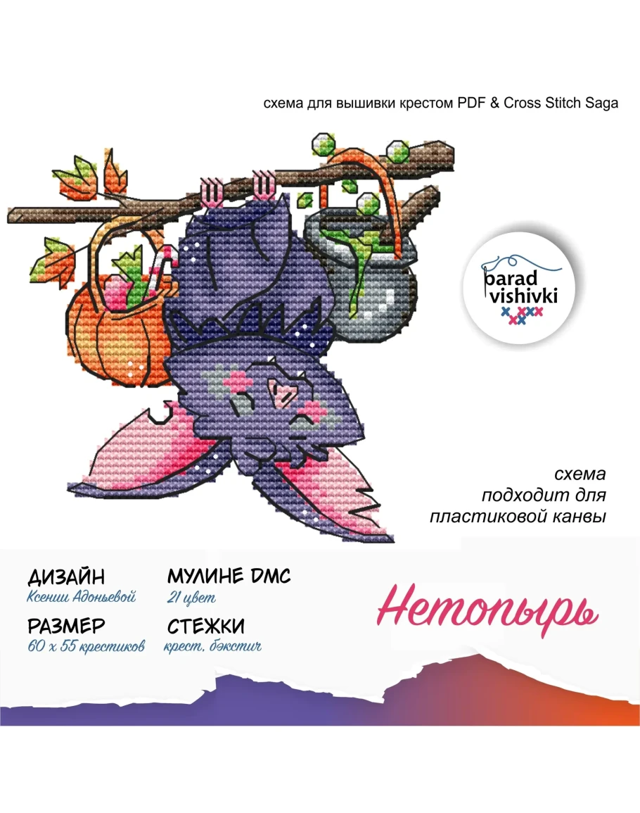 Эксклюзив. схема для вышивки крестом Нетопырь
