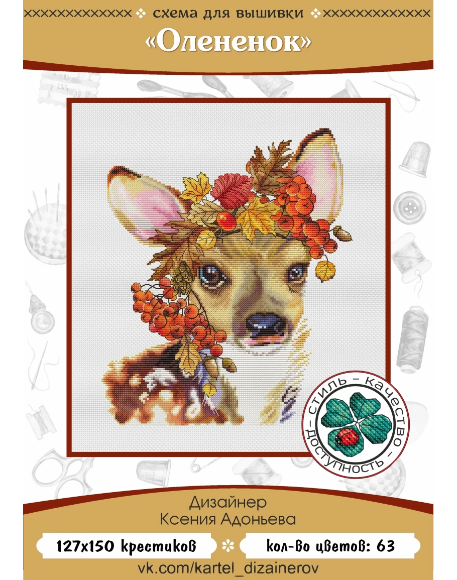 Эксклюзив. схема для вышивки крестом "Олененок"