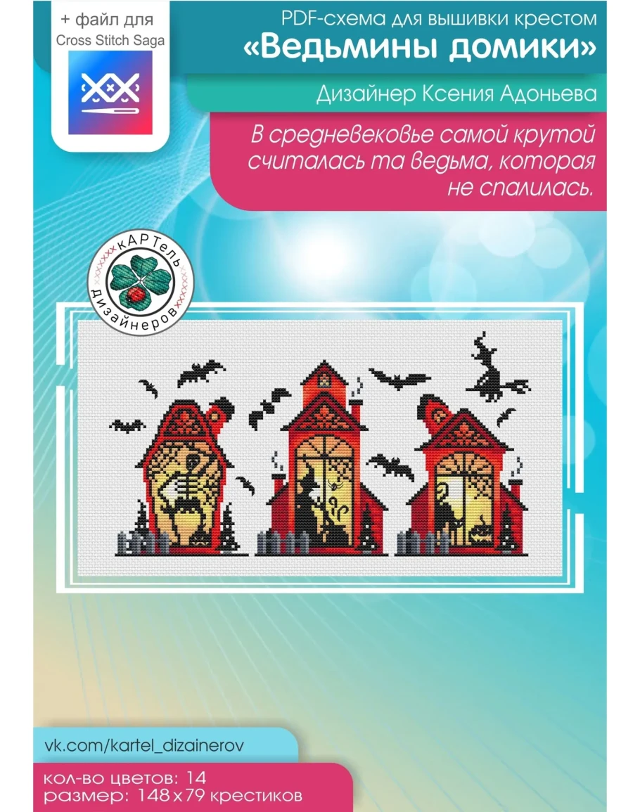 Эксклюзив. схема для вышивки крестом Ведьмины домики