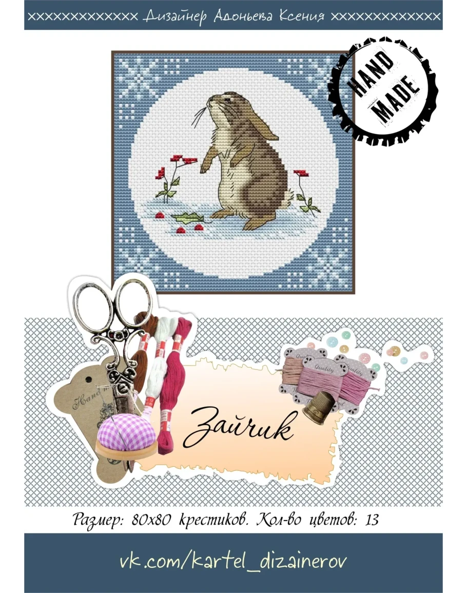 Эксклюзив. схема для вышивки крестом зимний зайчик