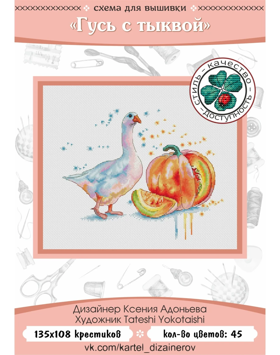 Эксклюзивная схема для вышивки крестом "Гусь с тыквой"