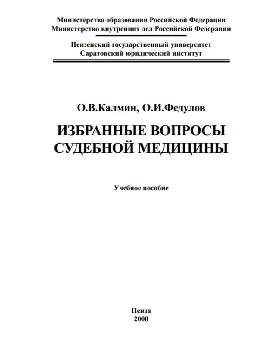 О.В.Калмин, О.И.Федулов Избранные вопросы судебной медицины