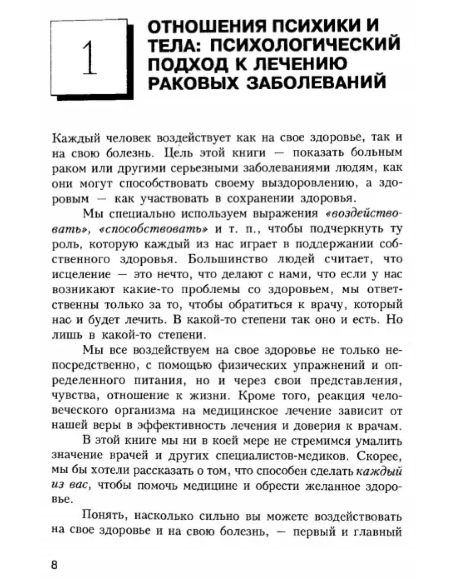 Эта книга, раскрывающая тайны психоиммунологии, уже на протяжении многих лет является одной из наиболее читаемых в США среди больных онкологическими и другими тяжелыми заболеваниями, их родственников, а также онкологов и психотерапевтов. Авторы предлагают по-новому взглянуть на неизлечимые болезни.