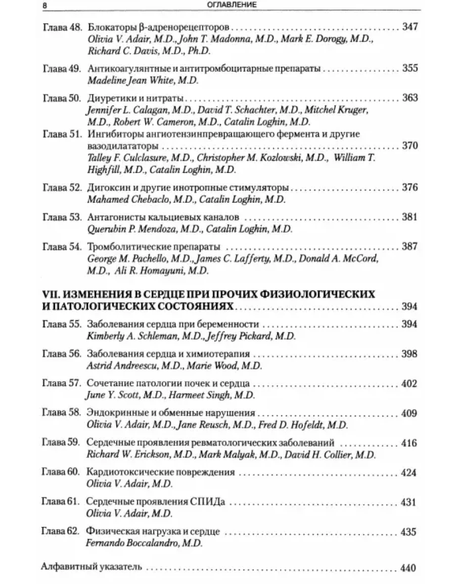 В коллективном труде, созданном под руководством известного американского кардиолога Оливии Эдейр, рассмотрен широкий круг вопросов: методы обследования кардиологических больных с использованием современной диагностической аппаратуры, этиология, патогенез, диагностика и лечение аритмий, ишемической болезни сердца, застойной сердечной недостаточности, заболеваний аорты и периферических сосудов, опухолей и травм сердца и т.д., а также кардиологические проблемы, возникающие у больных с другой патологией (заболевания легких, эндокринные нарушения, вирусные инфекции и др.). Несколько глав книги посвящено анализу эффективности и безопасности лекарственных препаратов, наиболее широко применяемых в кардиологической практике.