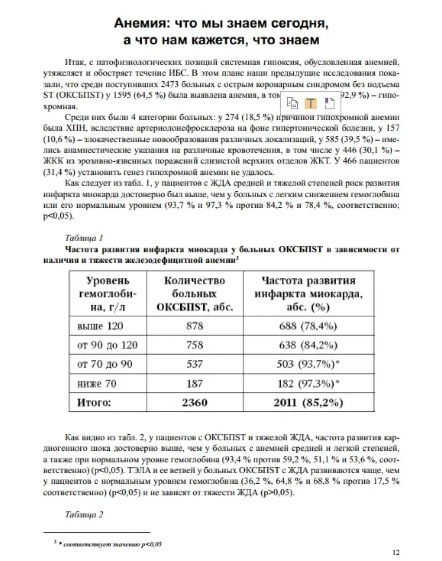 Анемия – это не только распространенное во всем мире состояние, но и серьезный фактор риска сердечно-сосудистых осложнений, в том числе инфаркта миокарда.