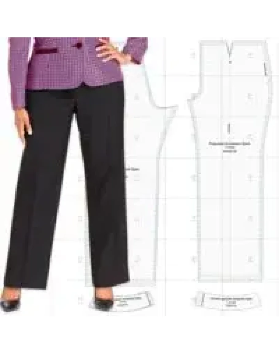 Выкройка брюк для полных прямого кроя с высокой посадкой, застежка-молния расположена в левом боковом шве.