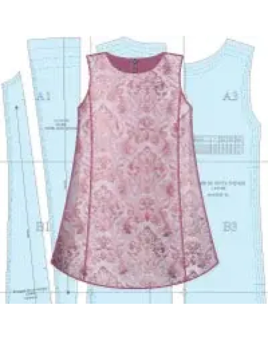 Выкройка детского платья А-силуэта с вертикальными рельефами, без рукавов.