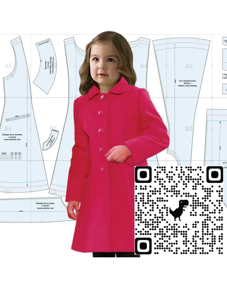 Готовая выкройка пальто для девочек дошкольного возраста в натуральную величину для распечатывания на домашнем принтере.