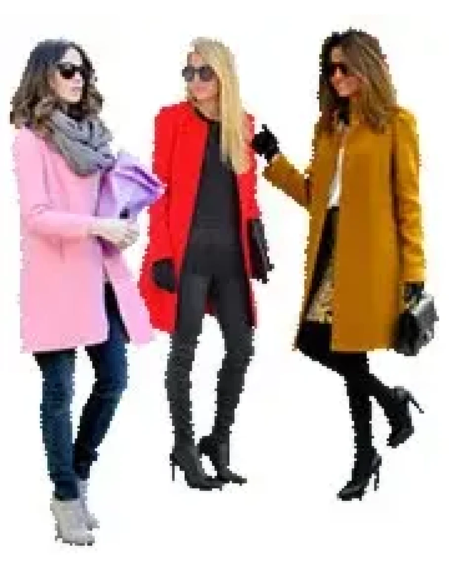 Модное пальто без воротника, которое можно дополнить яркими аксессуарами – шарфом или поясом