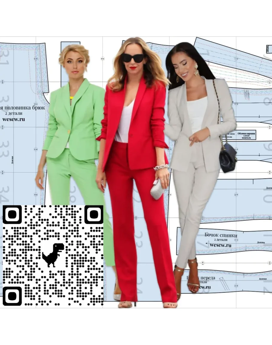 Готовая выкройка женского брючного костюма Ог 96 От 78 Об 10. Женский брючный костюм в этом сезоне занимает лидирующую позицию в гардеробе современной модницы.