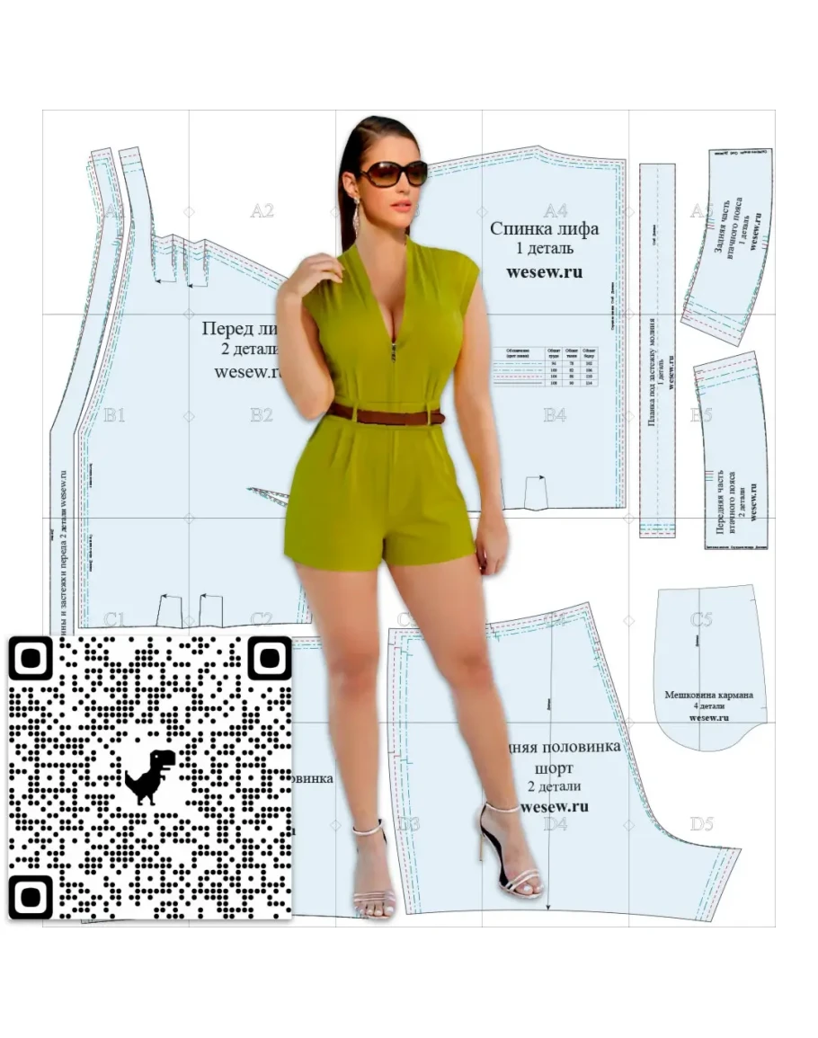 Готовая выкройка летнего комбинезона в натуральную величину без припусков на швы. Распечатывается на обычном принтере.