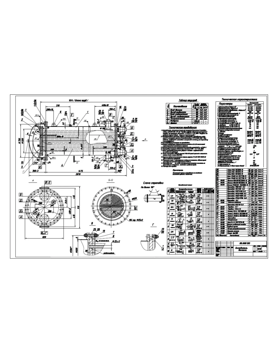 Чертеж охладителя бензина. В кмплекте чертеж общего вида, чертежи сборочных единиц, чертежи деталей. Формат DWG.
