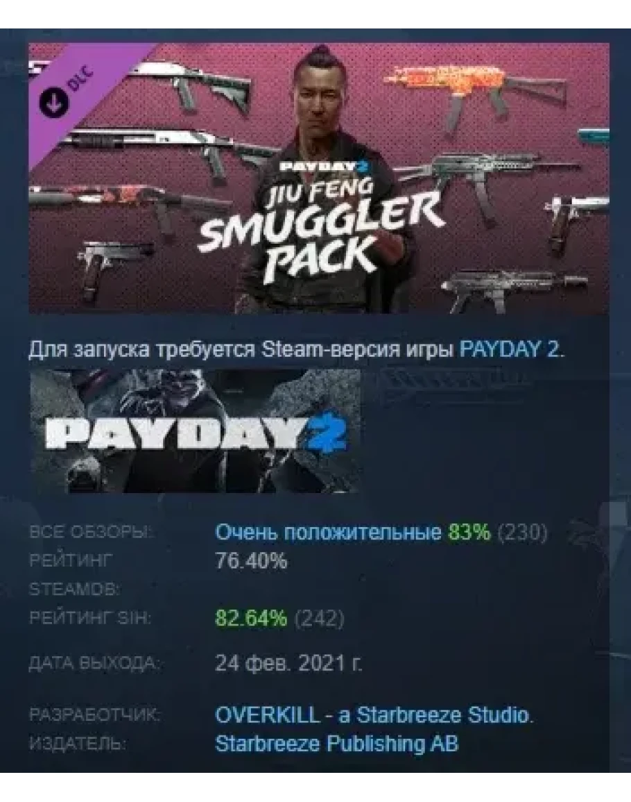 PAYDAY 2: Jiu Feng Smuggler Pack DLC STEAM GIFT РОССИЯ