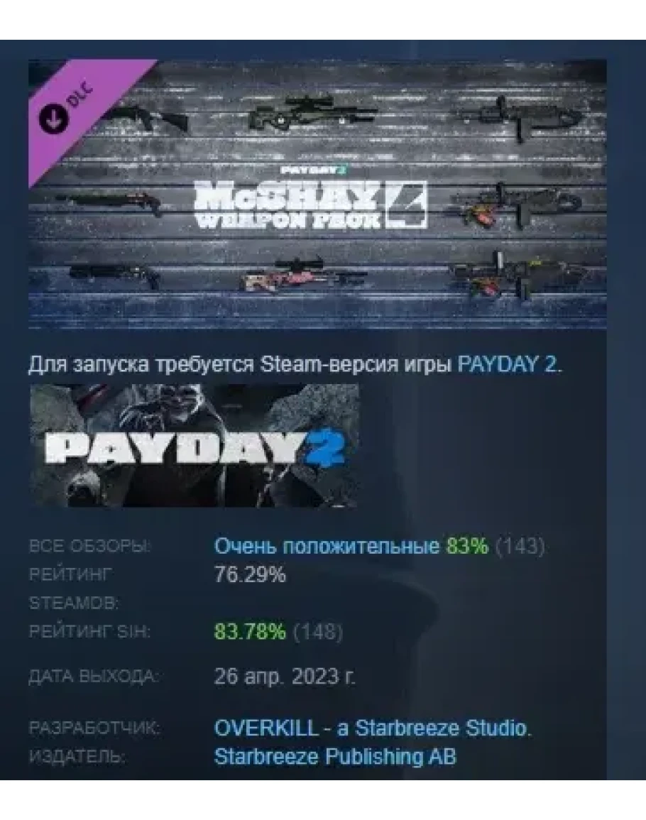 https://store.steampowered.com/app/2353510/PAYDAY_2_McShay_Weapon_Pack_4/