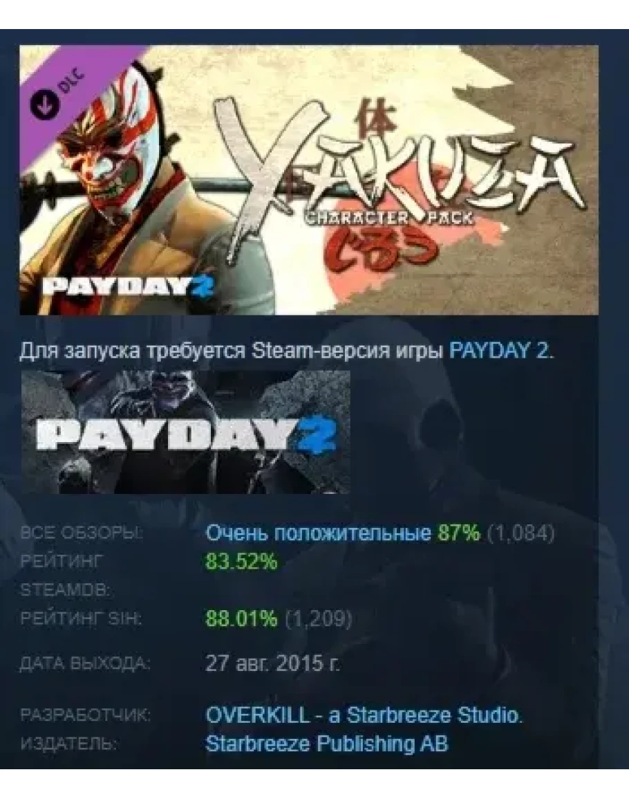 PAYDAY 2: Yakuza Character Pack DLC STEAM РОССИЯ