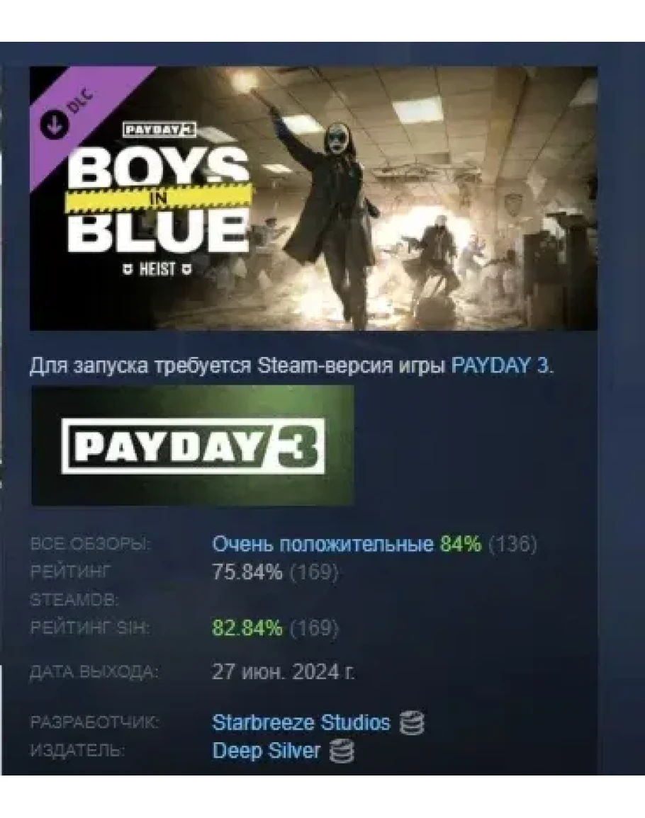 PAYDAY 3: Boys in Blue Heist АВТОДОСТАВКА STEAM РОССИЯ