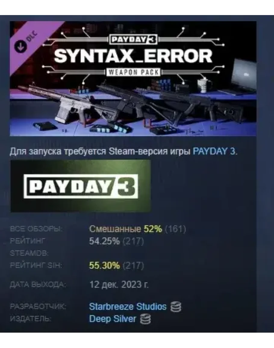 PAYDAY 3: Syntax Error Weapon Pack DLC STEAM РОССИЯ