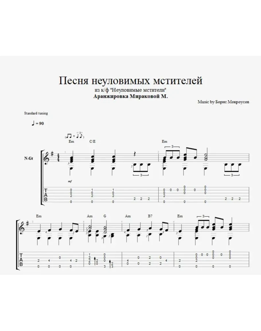 Переложение для шестиструнной гитары от Марины Мираковой на композицию "Песня неуловимых мстителей", написанную Борисом Мокроусовым специально для фильма "Неуловимые мстители".