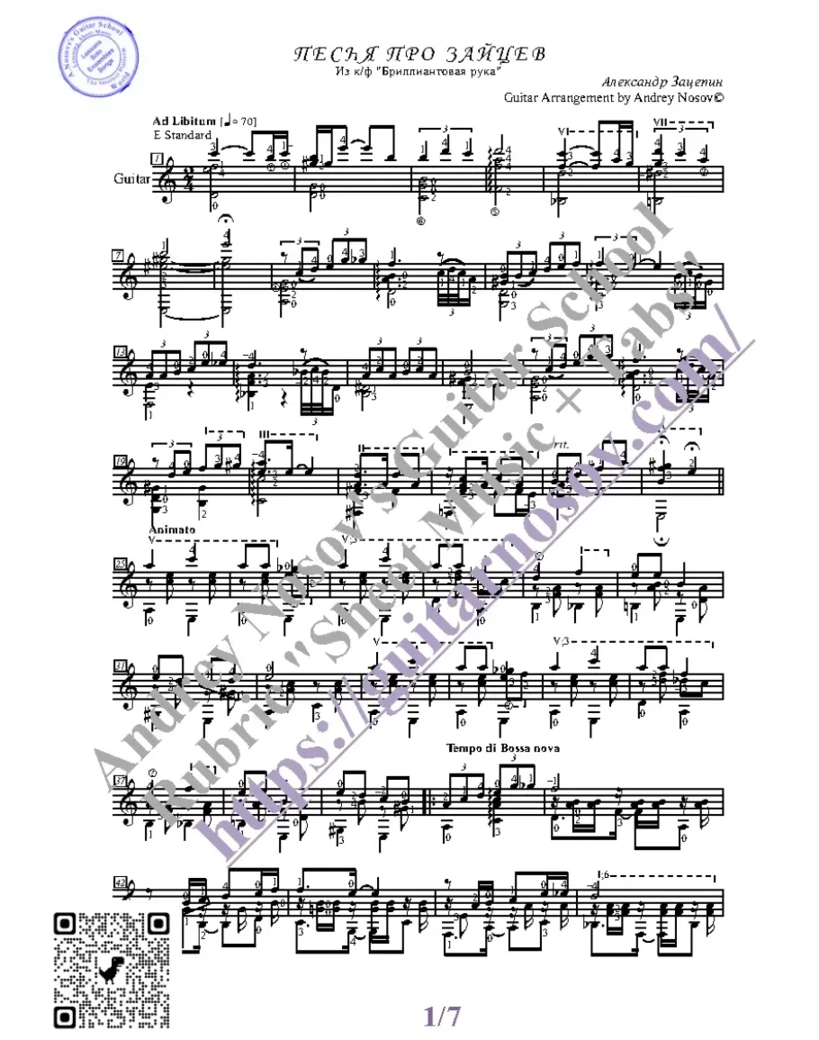 Товар состоит из двух частей (pdf / png*): 1 – Ноты с табулатурой; 2 – Ноты без табулатуры. Прилагается ссылка на скачивание mp3.