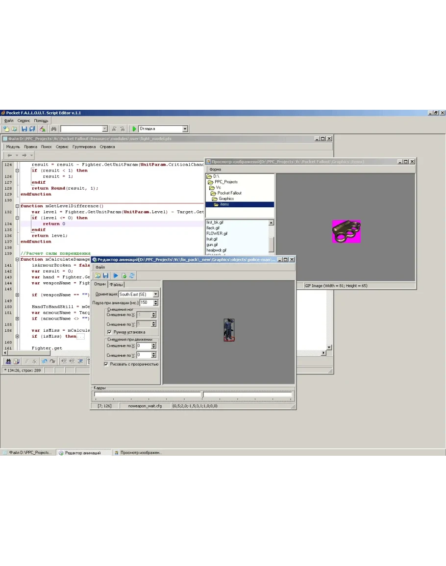 Интегрированная среда разработки (IDE) для интерактивной работы с ресурсами (скриптовые файлы, параметры анимаций, изображения) проекта Pocket F.A.L.L.O.U.T. Упрощает и ускоряет процесс разработки скриптов.
