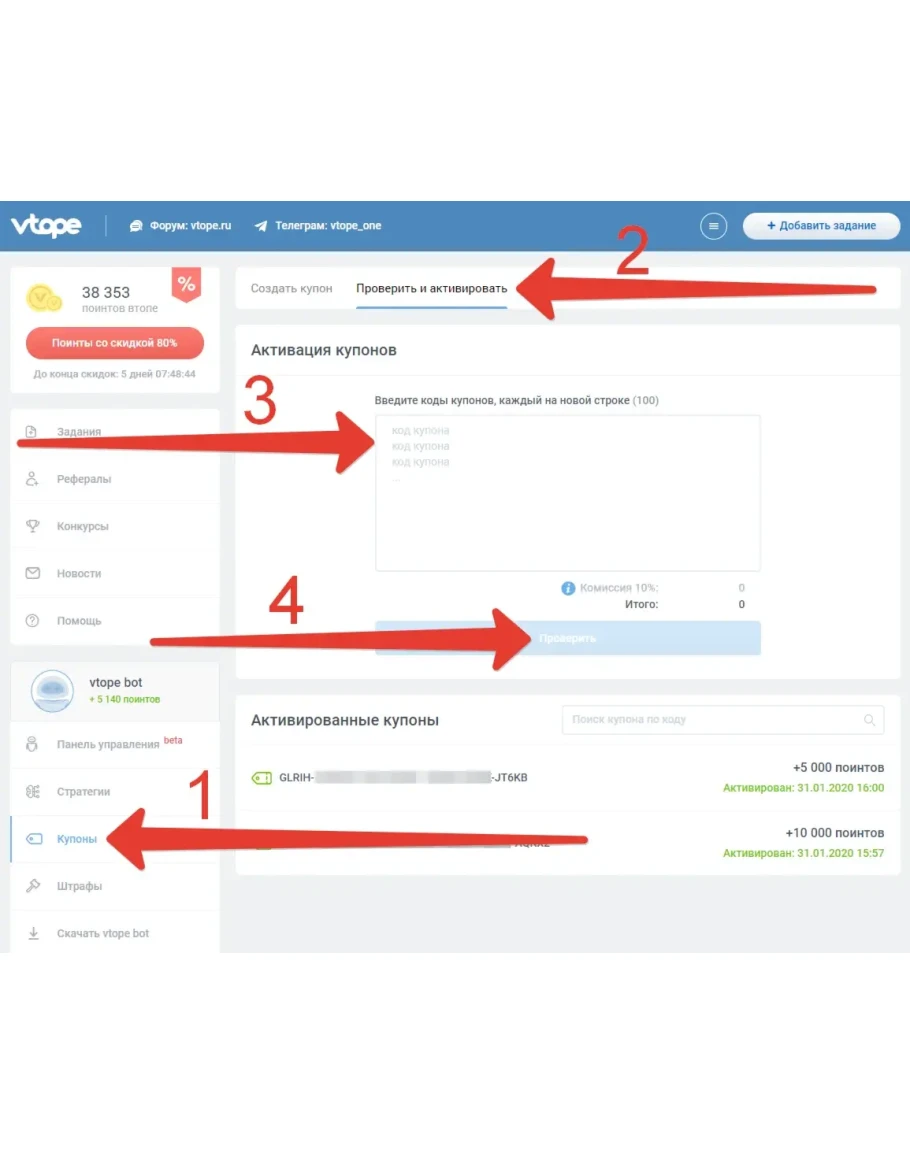 Купон Vto .pe 5000/10000 поинтов Втопе
