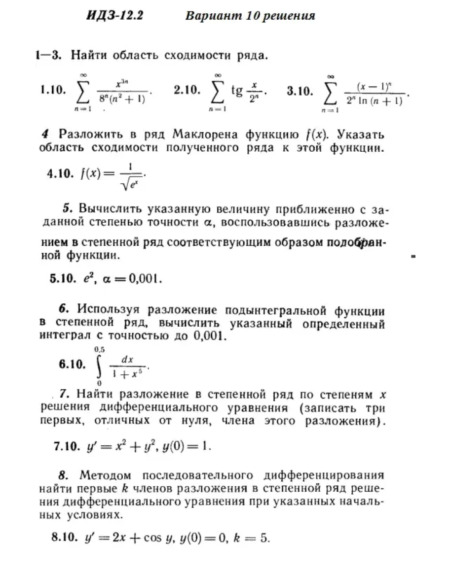 Решения 8-и заданий на область сходимости ряда, ряды Маклорена, Тейлора, степенные ряды Рябушко части 3 ИДЗ 12.2 вариант 10