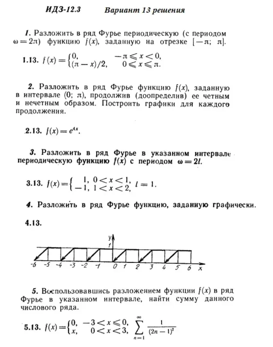 Решения 5-и заданий на ряды Фурье Рябушко части 3 ИДЗ 12.3 вариант 13