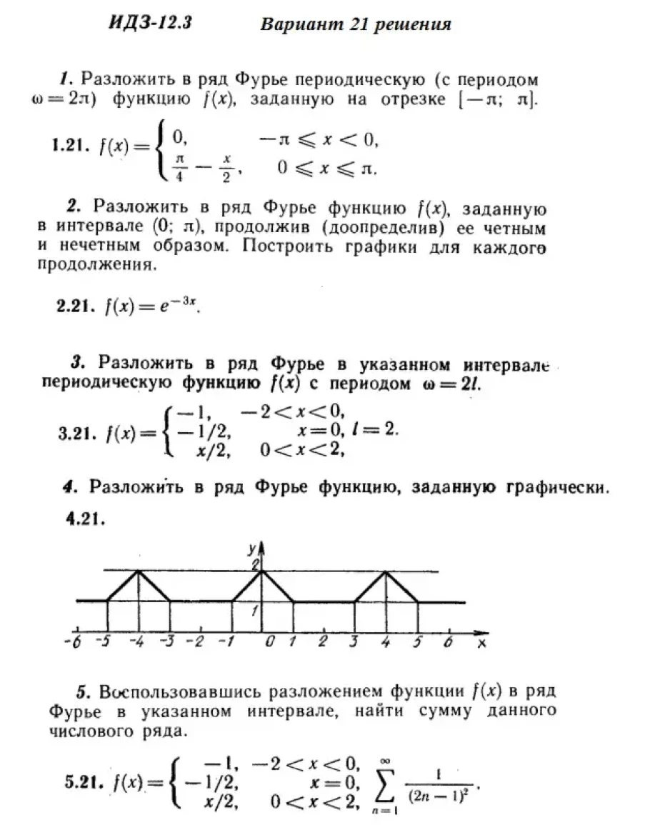 Решения 5-и заданий на ряды Фурье Рябушко части 3 ИДЗ 12.3 вариант 21