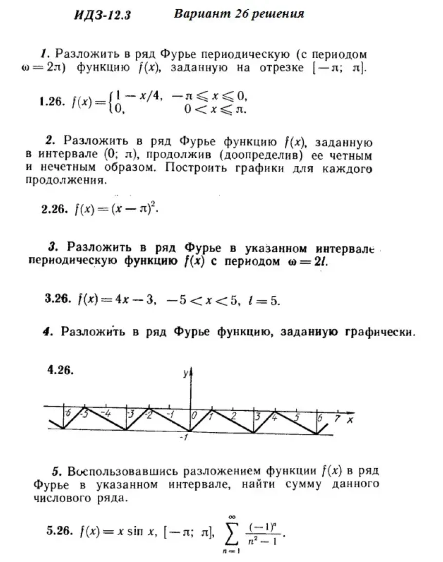 Решения 5-и заданий на ряды Фурье Рябушко части 3 ИДЗ 12.3 вариант 26