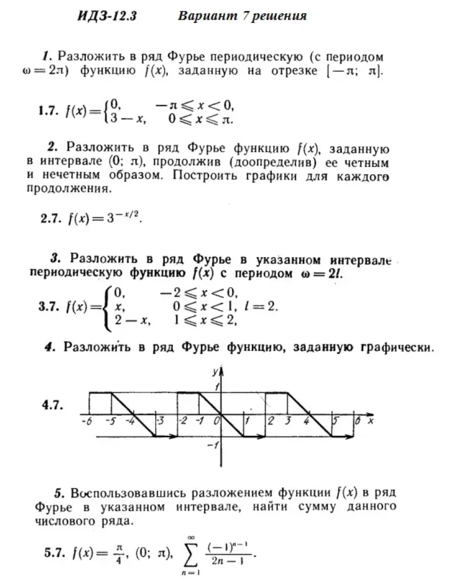 Решения 5-и заданий на ряды Фурье Рябушко части 3 ИДЗ 12.3 вариант 7