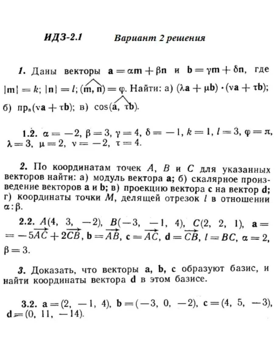 Решения 3-х заданий на вектора Рябушко части 1 ИДЗ 2.1 вариант 2