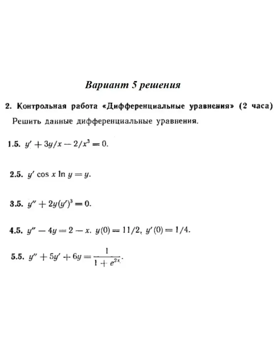 Решения 5-и заданий на тему "Дифференциальные уравнения" Контрольная работа на стр. 345 Рябушко части 2 вариант 5