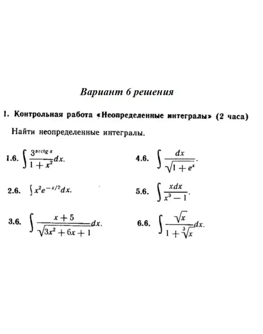 Решения 6-и заданий на тему "Неопределенные интегралы" Контрольная работа на стр. 340 Рябушко части 2 вариант 6