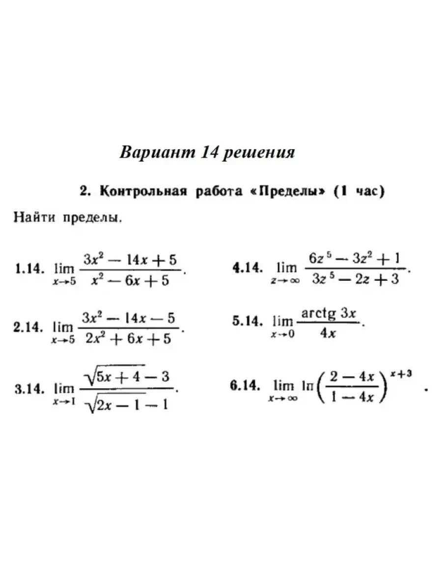 Решения 6-и заданий на тему "Пределы" Контрольная работа на стр. 255 Рябушко части 1 вариант 14